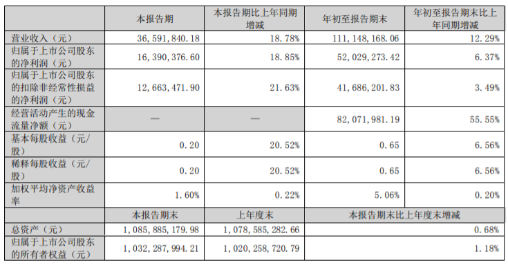 10月18日,开普检测发布2022年前三季度业绩报告。2022年1月1日-2022年9月30日,公司实现营业收入1.11亿元,同比增长12.29%,净利润5202.93万元,同比增长6.37%,基本每股收益为0.65元。