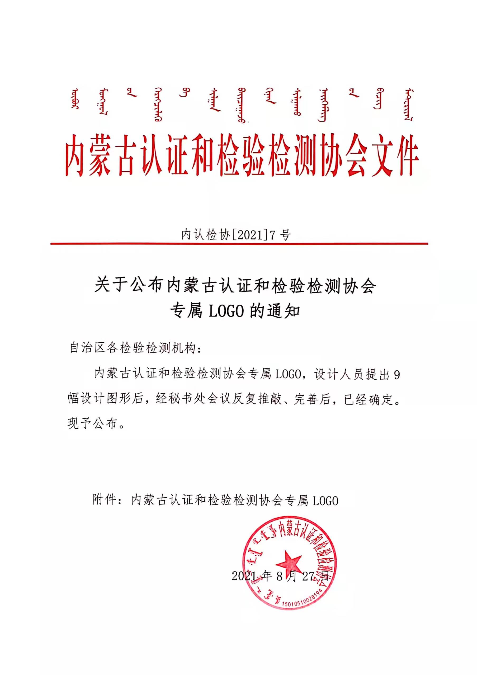 关于公布内蒙古认证和检验检测协会专属LOGO的通知
