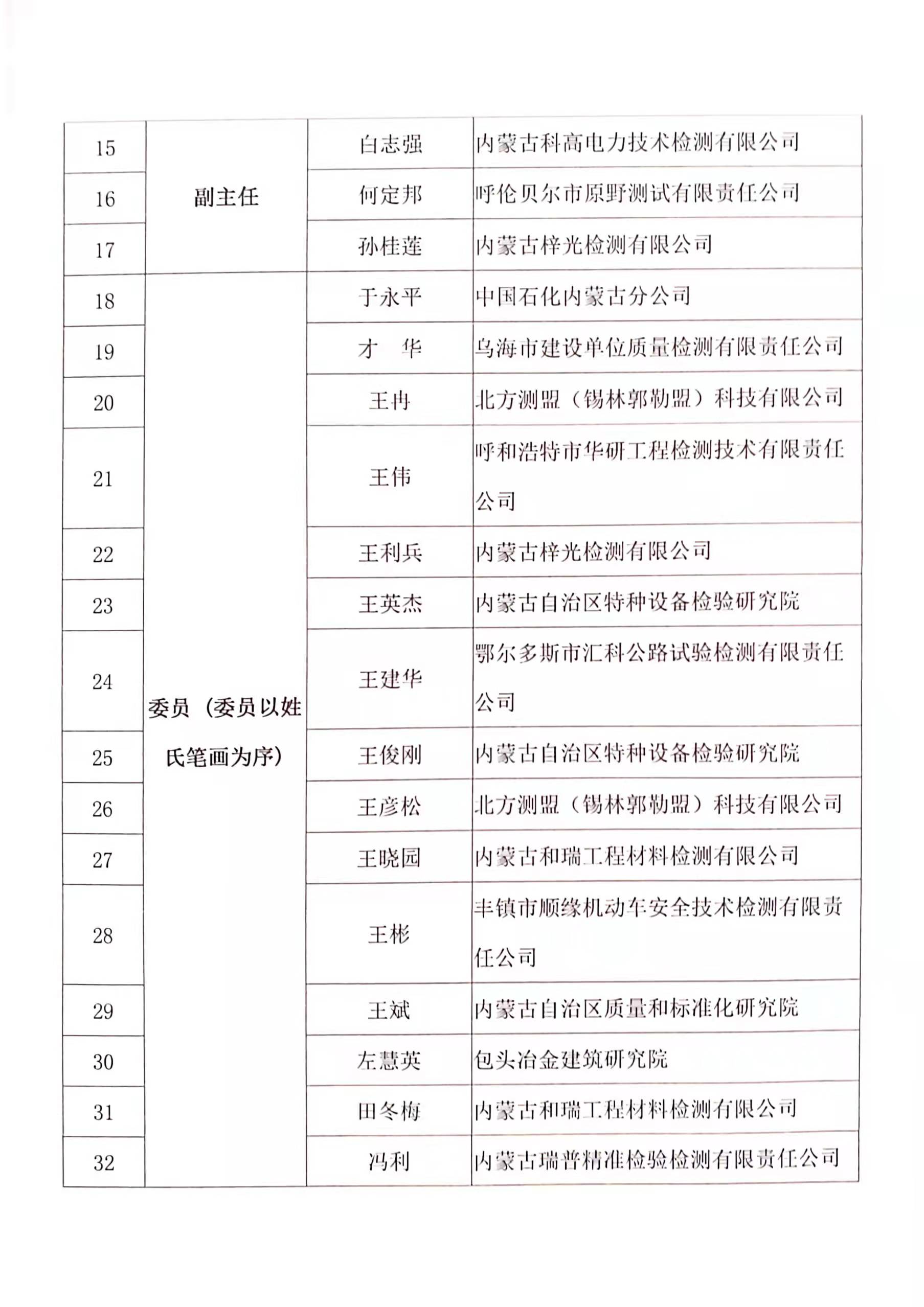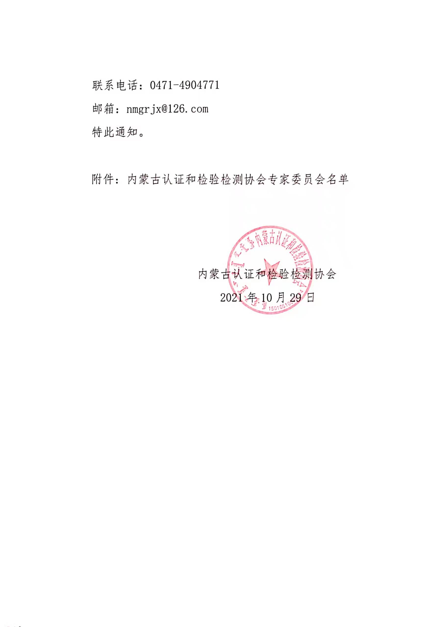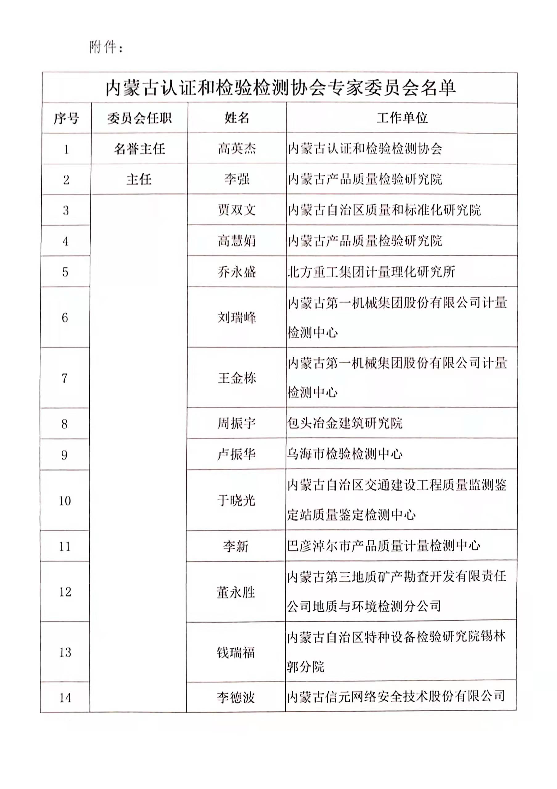 关于公示内蒙古认证和检验检测协会专家委员会专家名单的通知