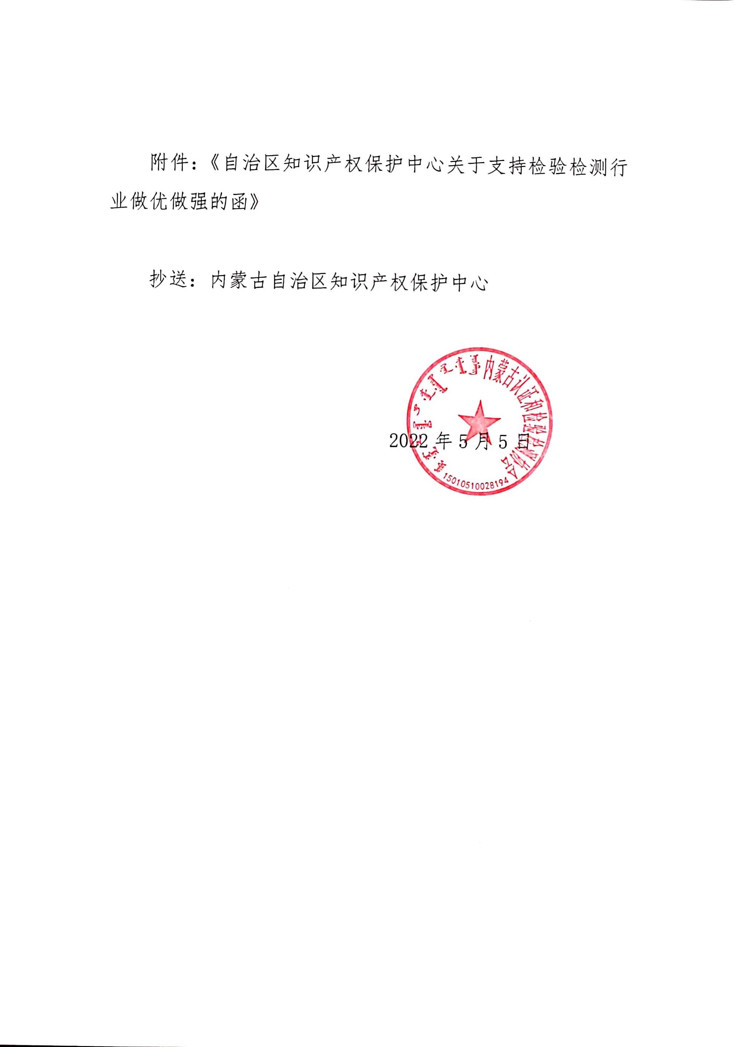 关于转发《自治区知识产权保护中心关于支持检验检测行业做优做强的函》的通