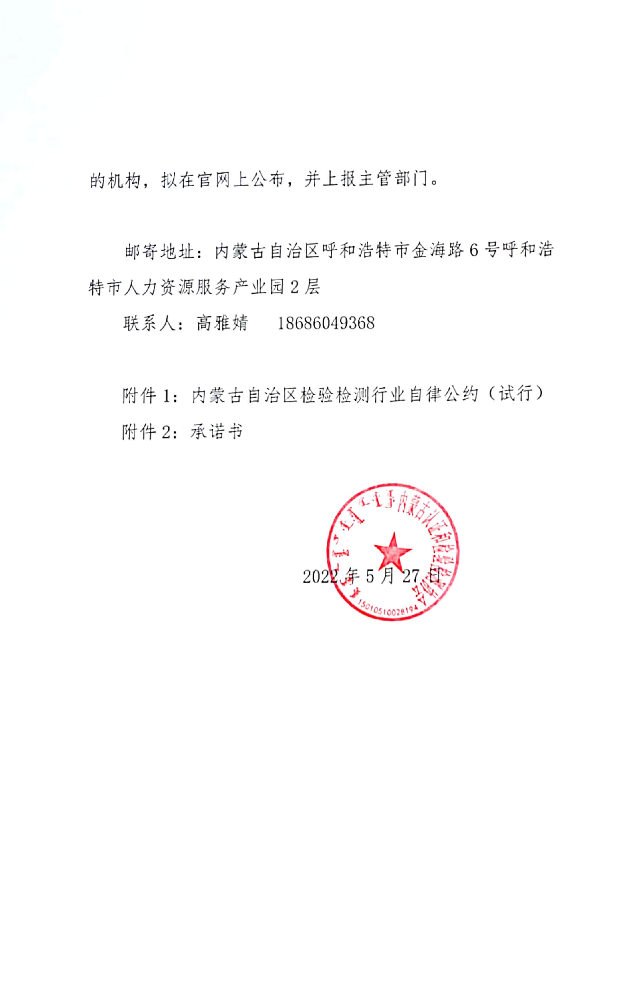 关于印发《内蒙古自治区检验检测行业自律公约(试行)》的通知
