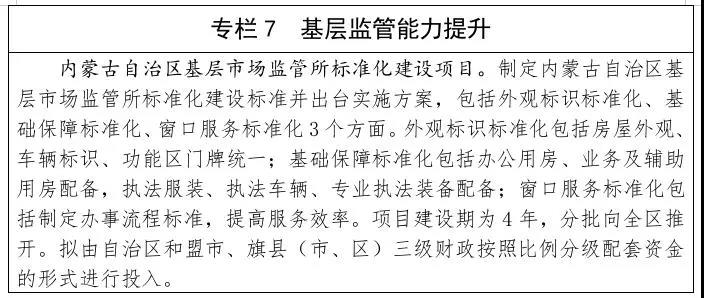 内蒙古自治区“十四五”市场监管规划重大项目表