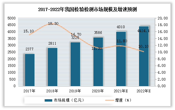 受益于政策利好,我国检验检测市场呈现不断增长态势。数据显示,2020年我国检验检测服务市场规模已经达到3585.92亿元(不包括贸易保障监测和医院医药),同比增长11.2%。初步估算2021年我国检验检测服务市场规模在4010亿元,并预计2022年这一市场规模将达4414.1亿元,增速也将在10%以上。