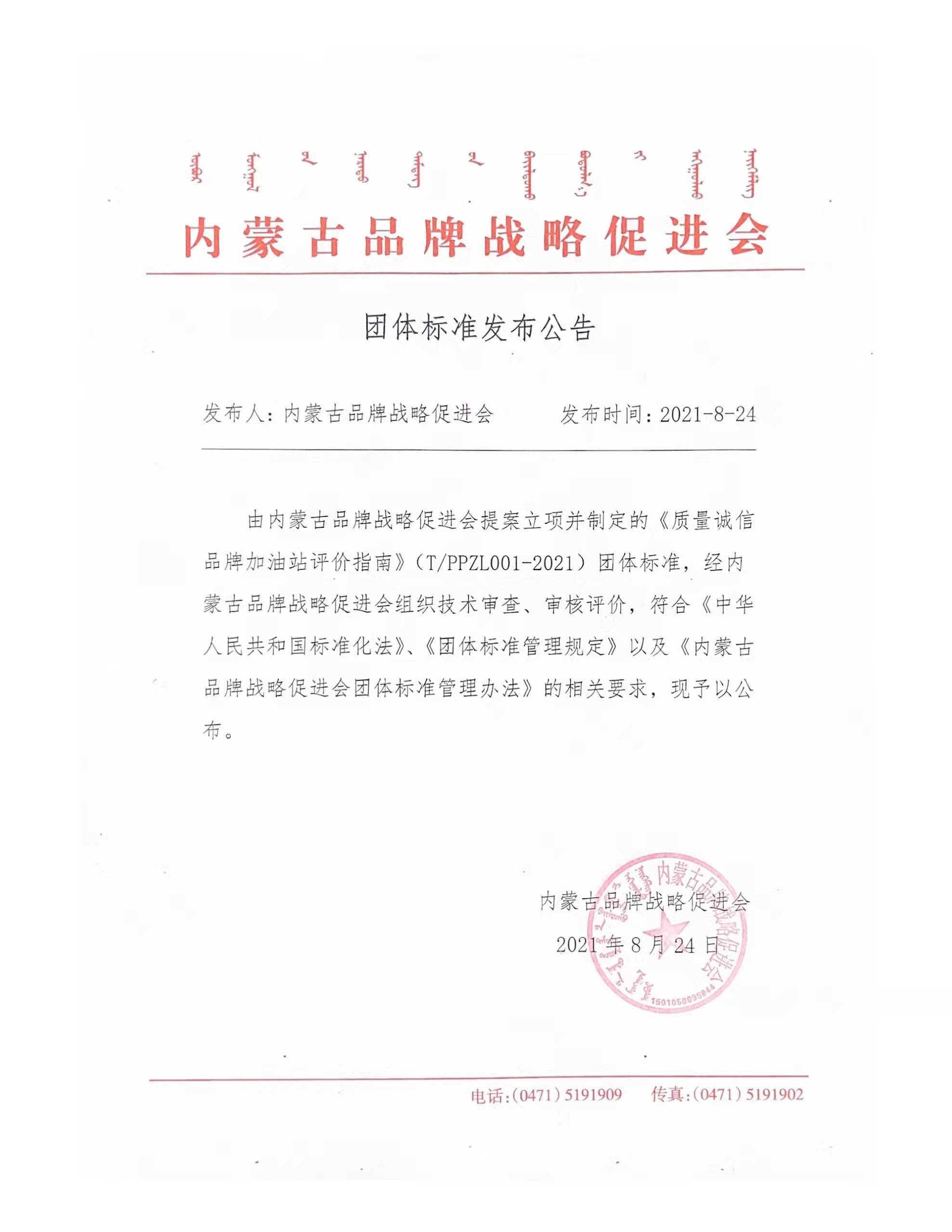 《质量诚信品牌加油站评价指南》团体标准发布公告