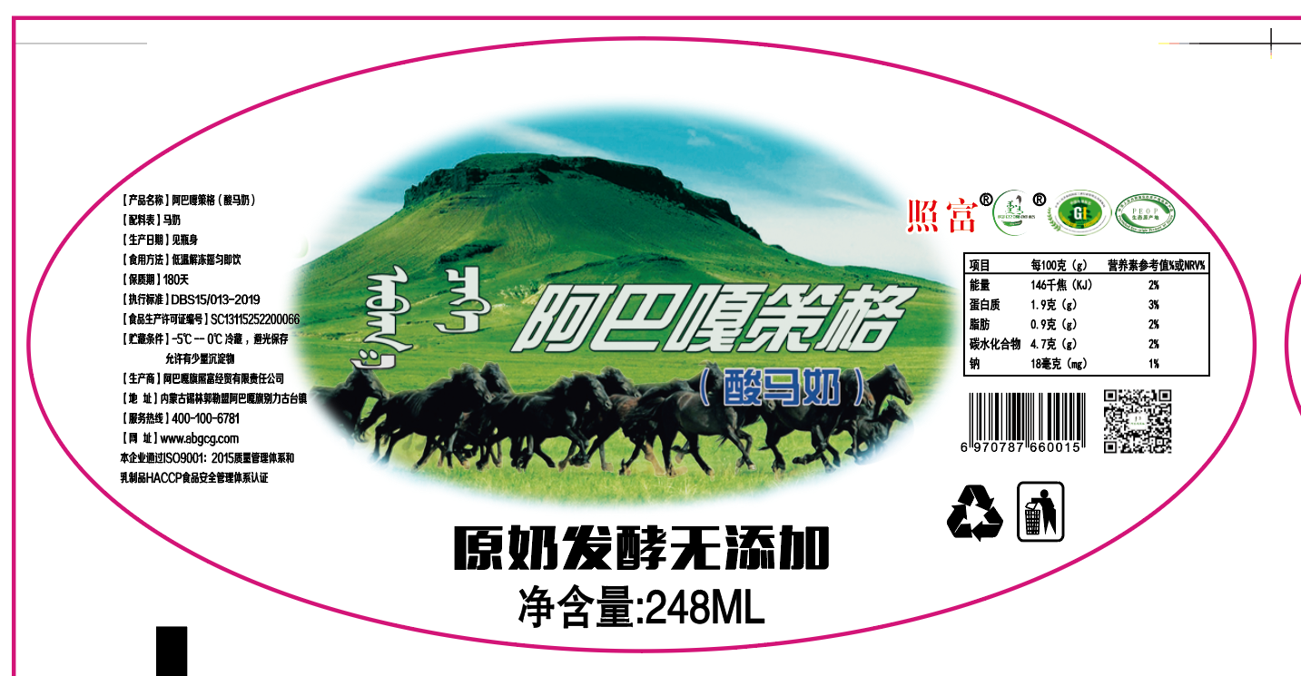 18、阿巴嘎旗人民政府(1)乌冉克羊 (2)阿巴嘎旗黑马 (3)阿巴嘎策格酸马奶 (4)潮尔道 (5)乌冉克羊肉制品
