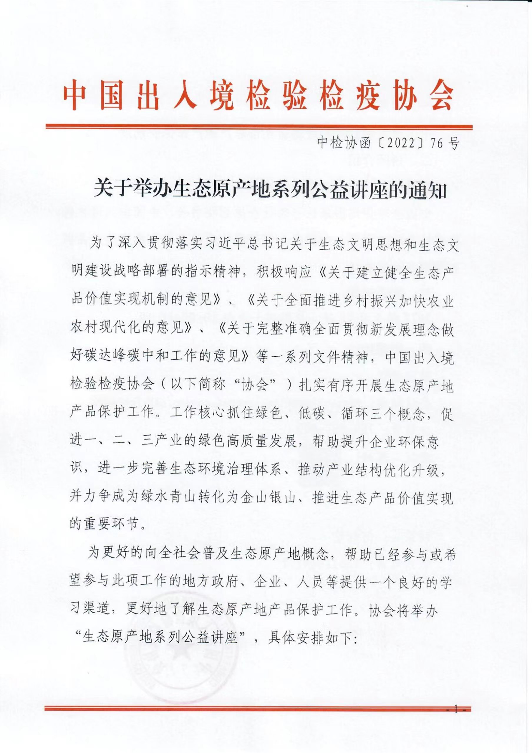 中检协【2022】76号关于举办生态原产地公益讲座的通知