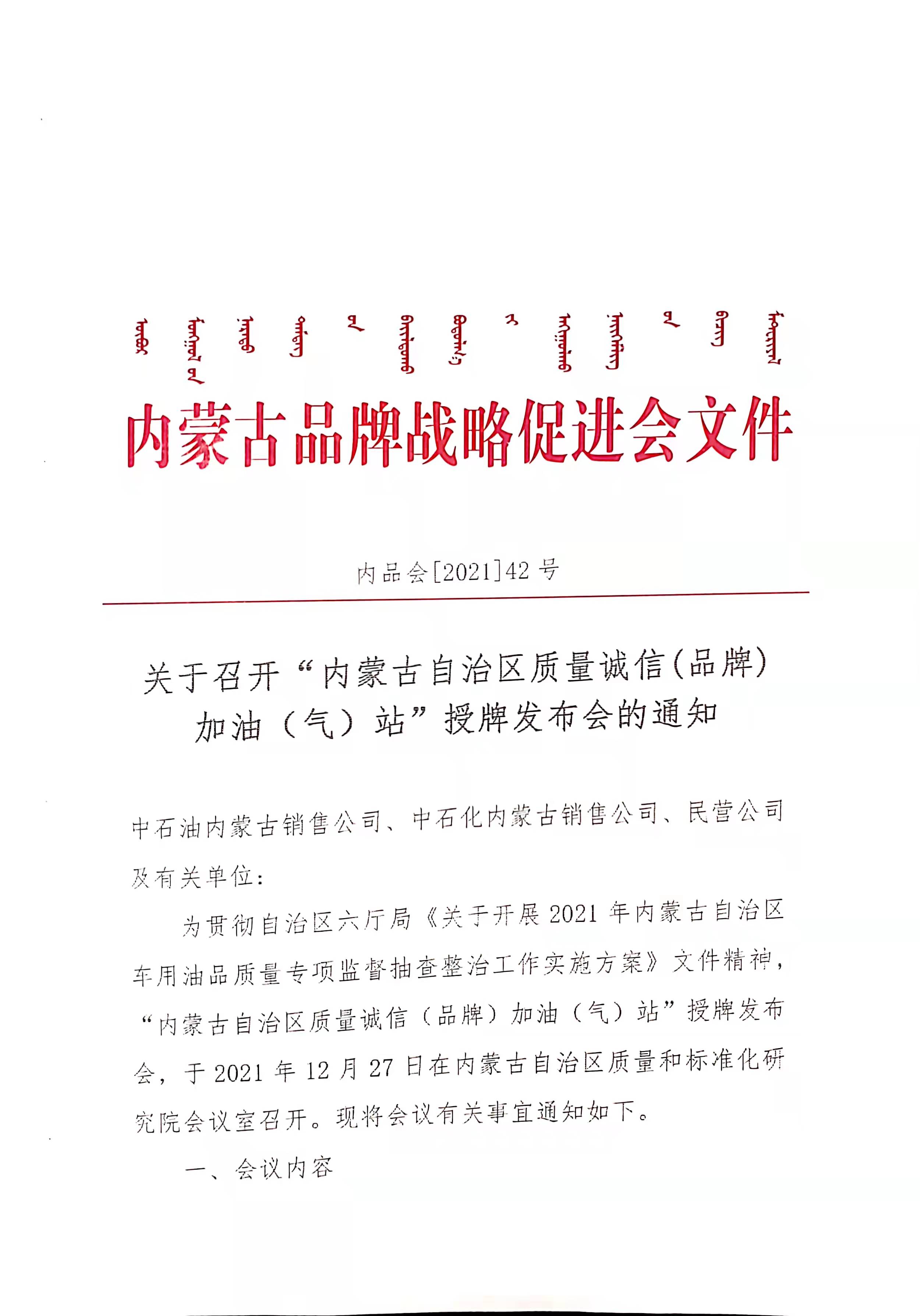 “质量诚信(品牌)加油(气)站”授牌仪式的通知