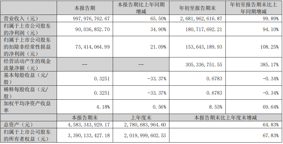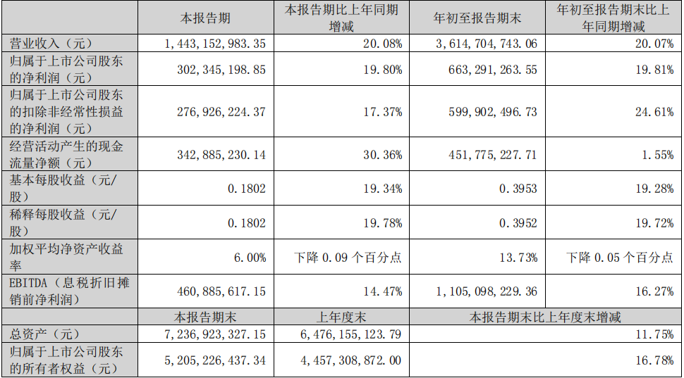 三季报显示,华测检测三季度实现营业收入14.43亿元,同比增加20.08%;净利润3.02亿元,同比增加19.8%。前三季度营业收入36.15亿,同比增加20.07%;实现净利6.63亿元,同比增加19.81%。