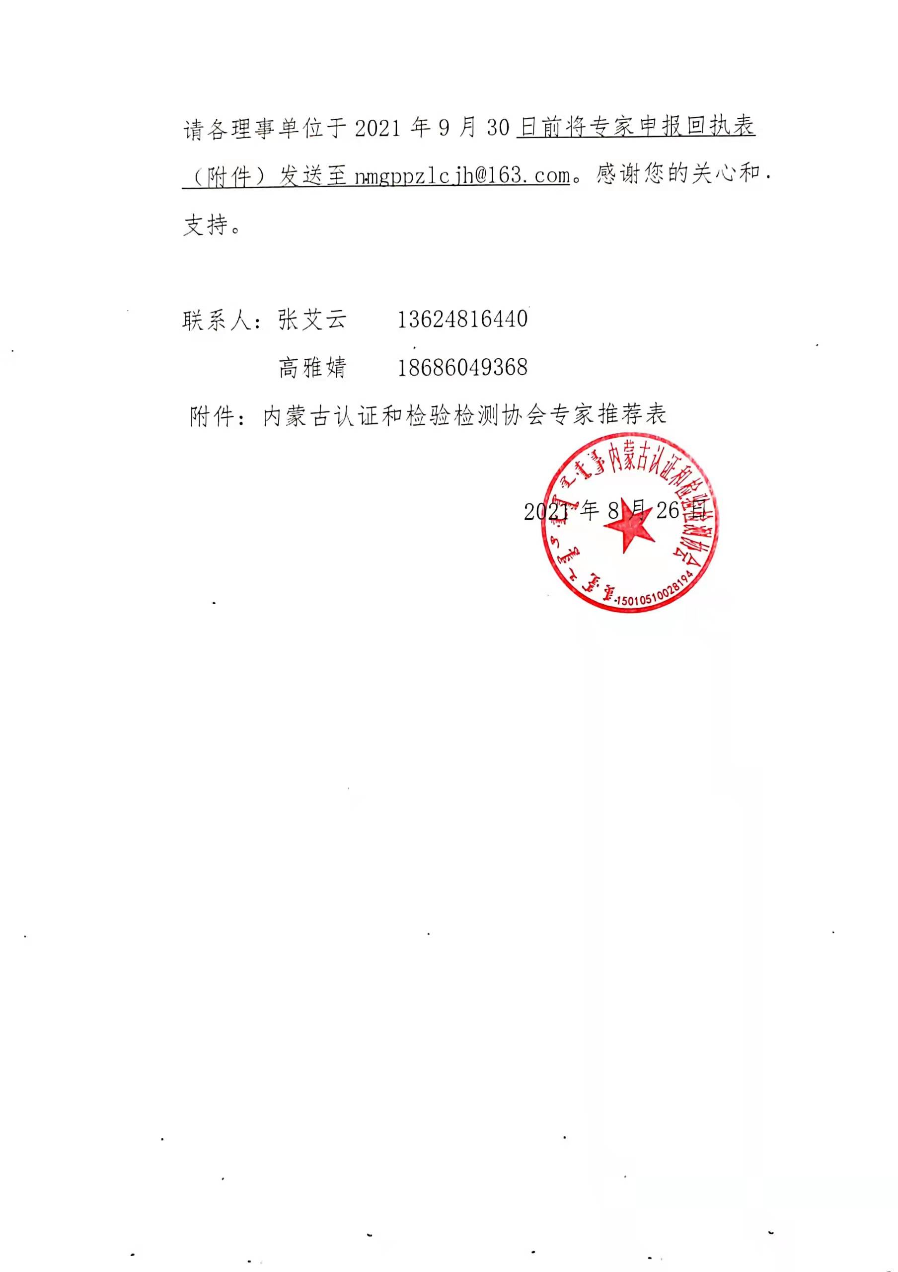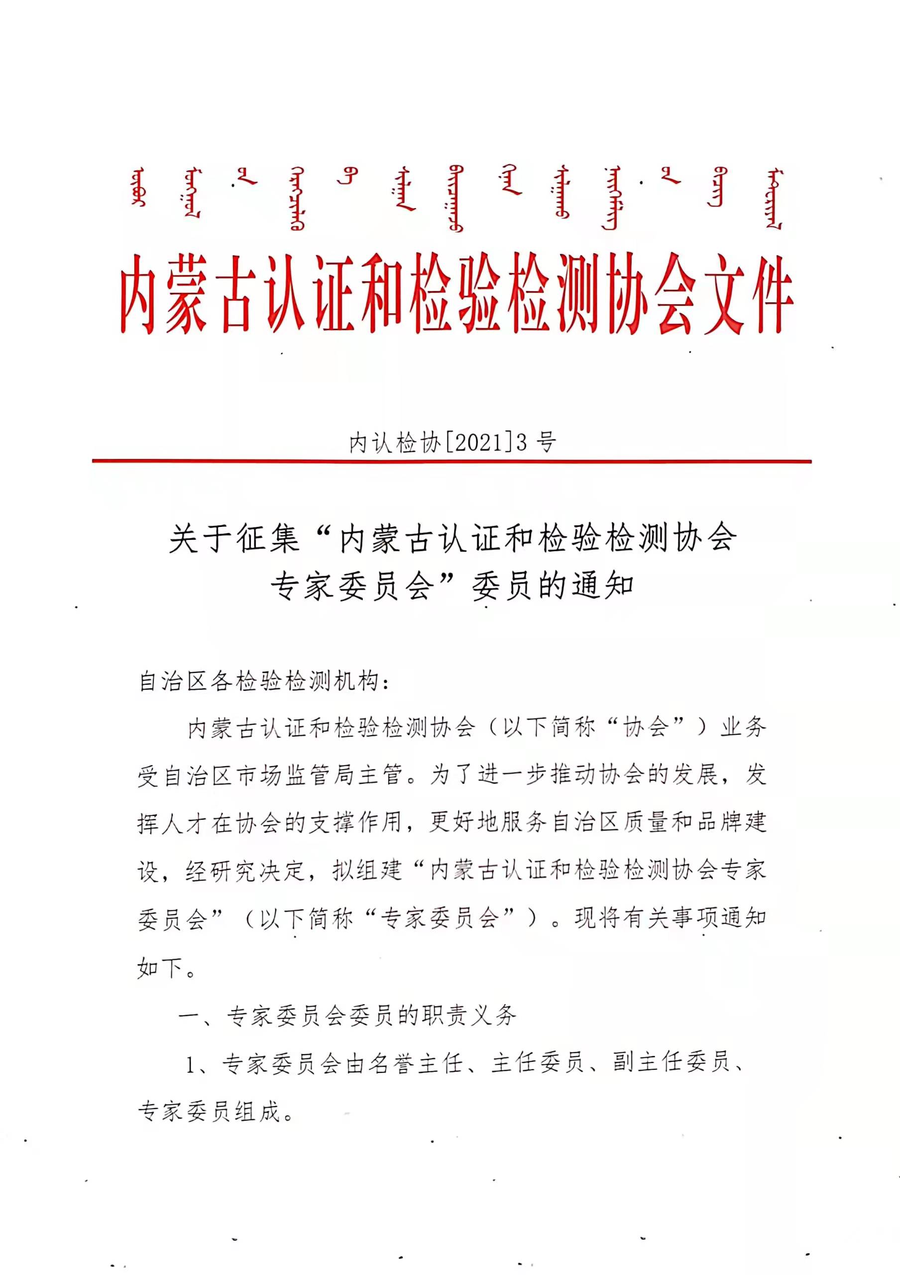 关于征集“内蒙古认证和检验检测协会专家委员会”委员的通知
