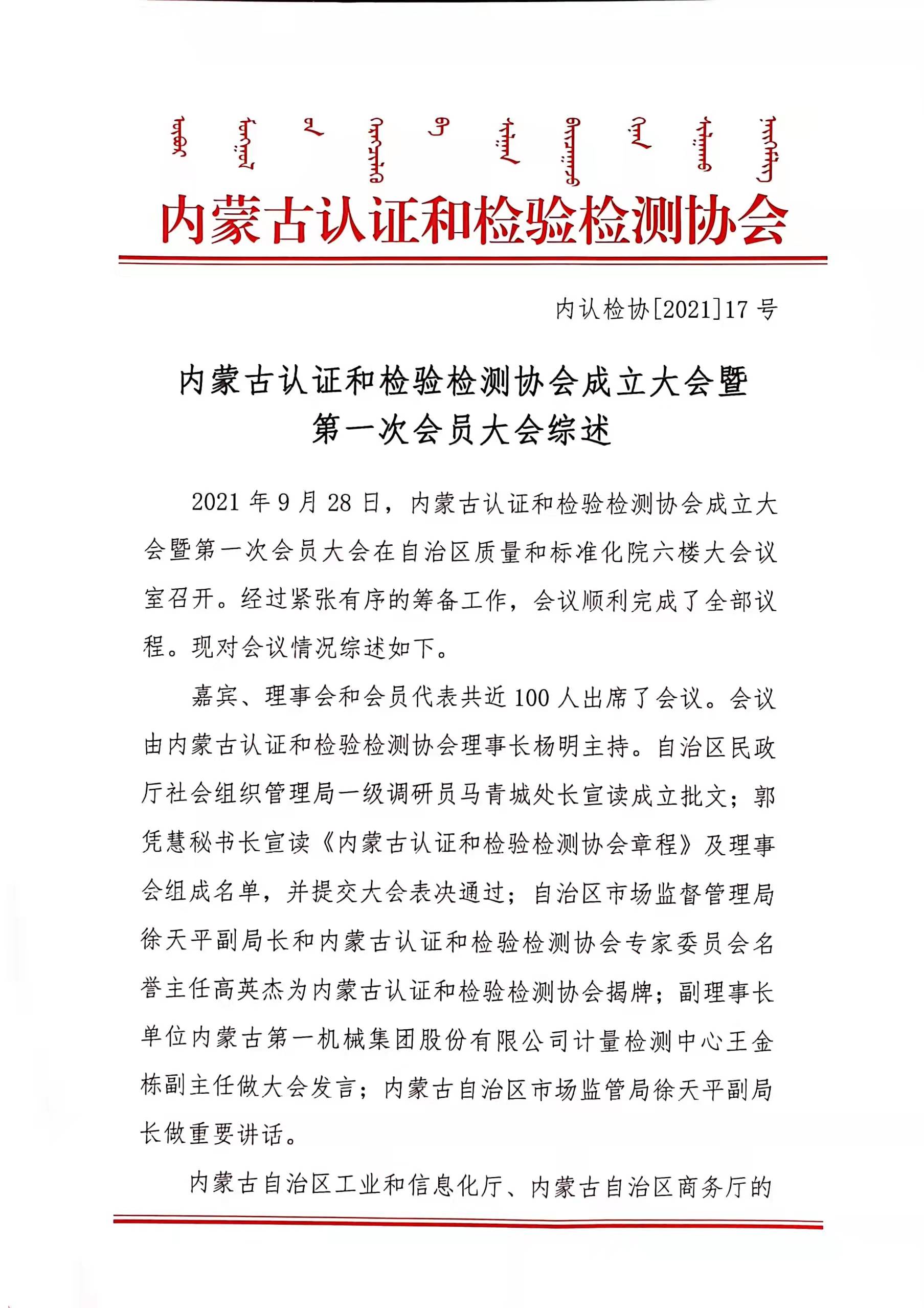 内蒙古认证和检验检测协会成立大会暨第一次会员大会综述