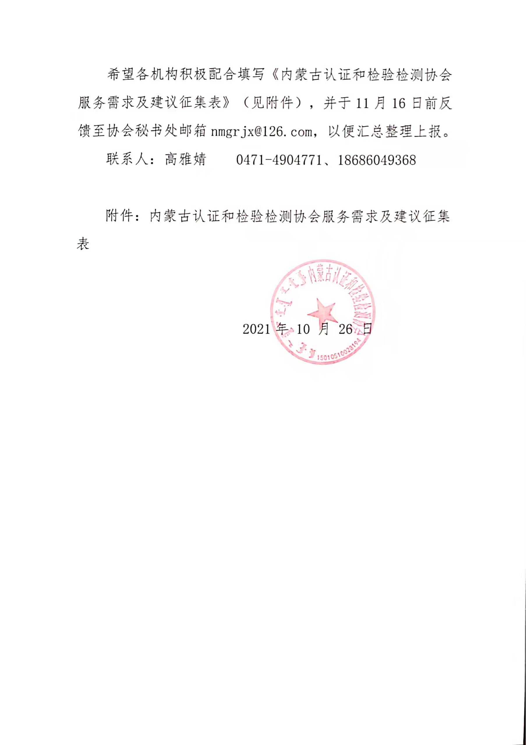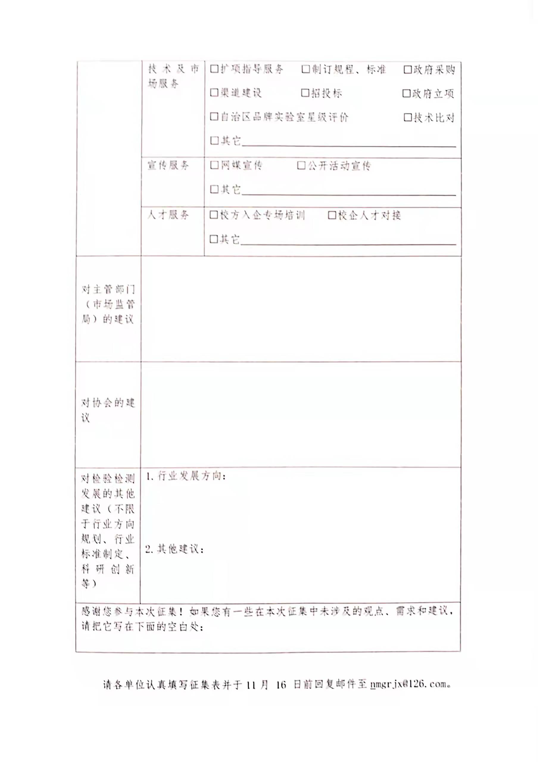 内蒙古认证和检验检测协会服务需求及建议征集表