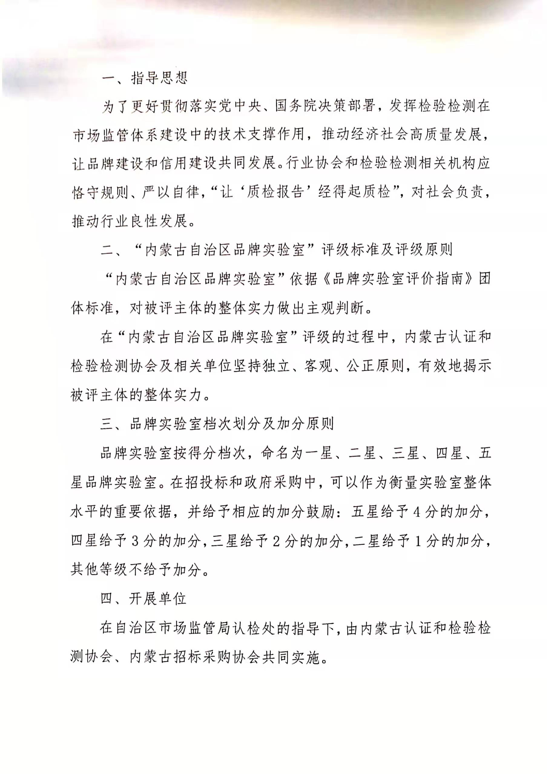 关于“内蒙古自治区品牌实验室”招投标加分的通知