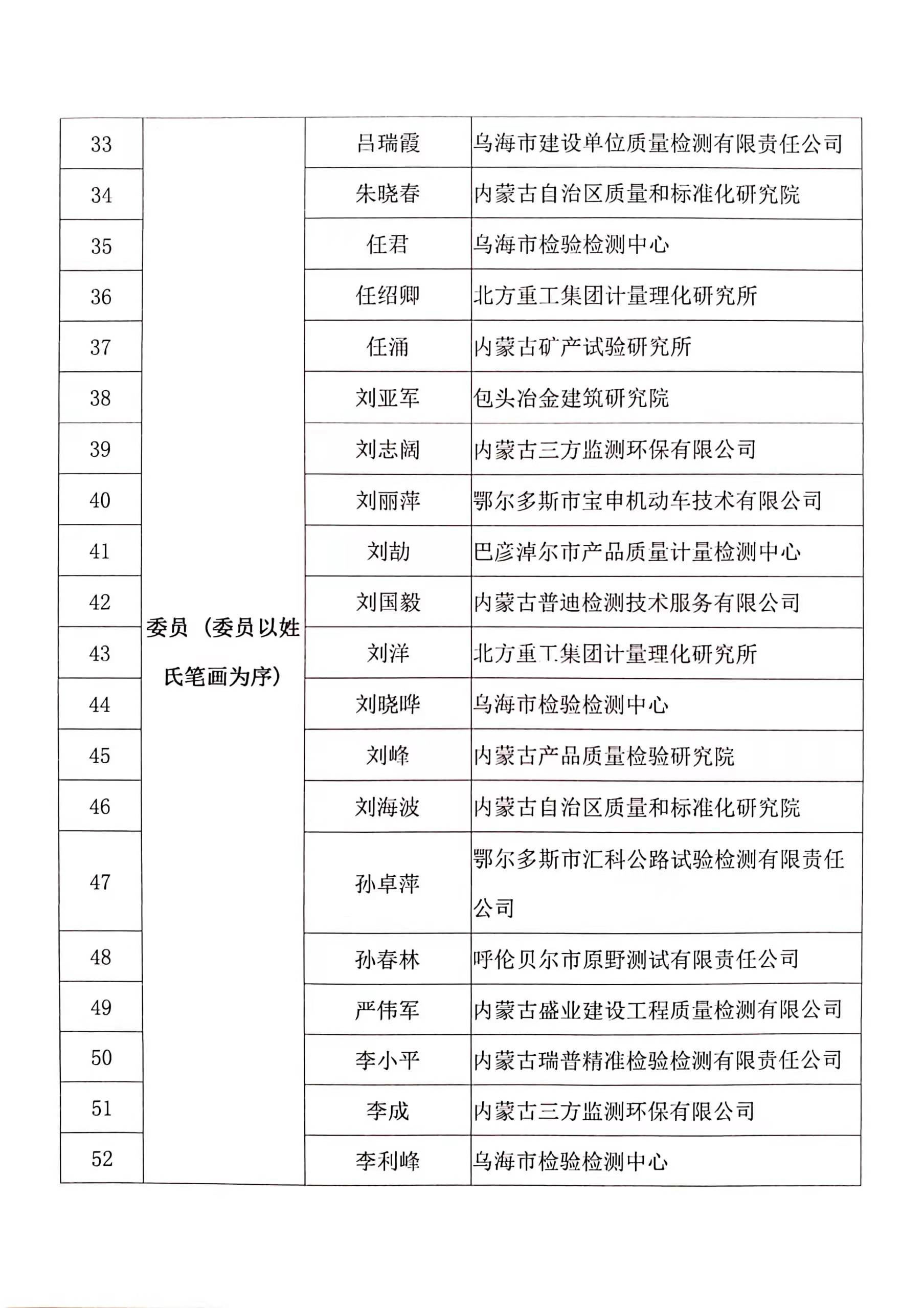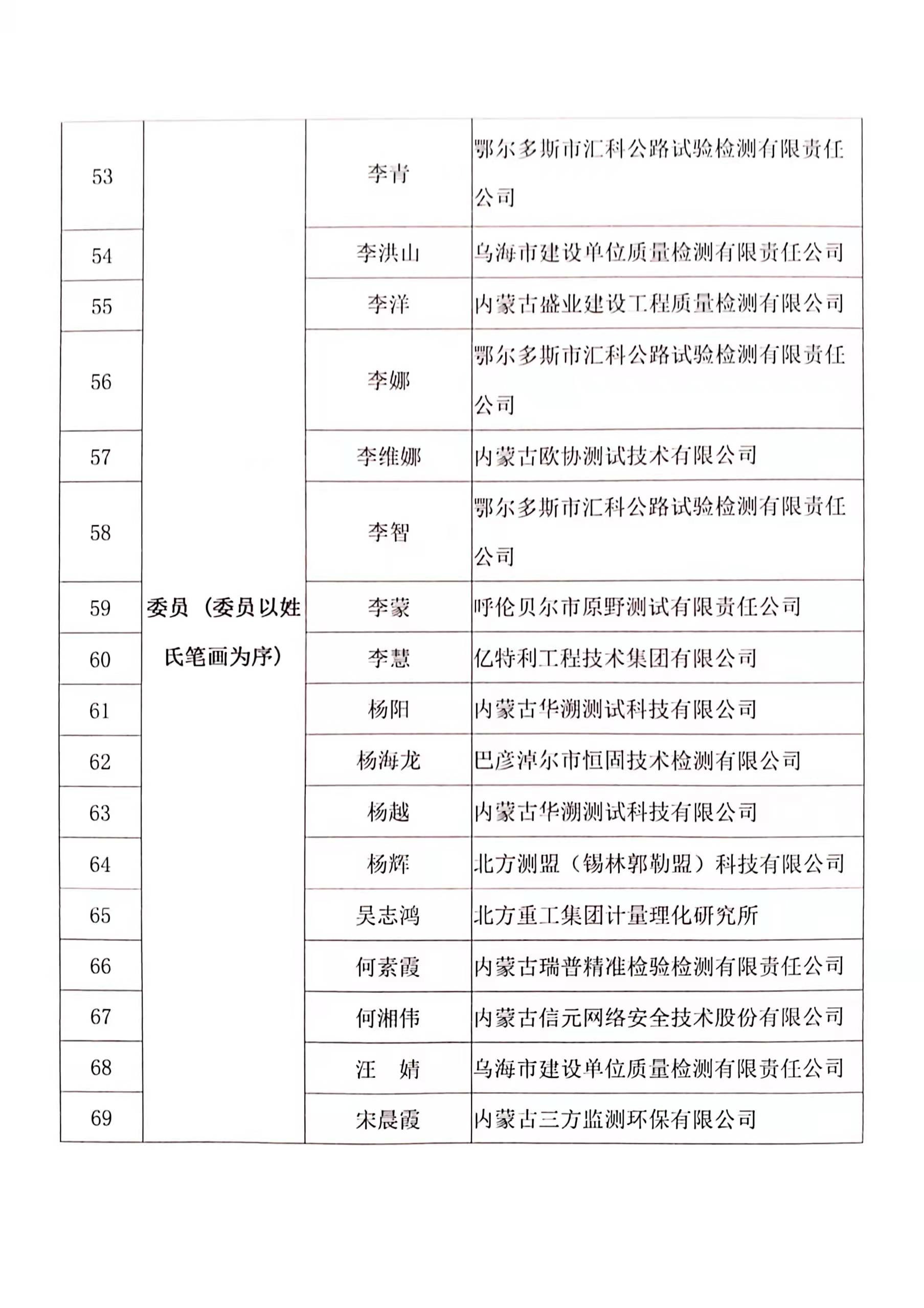 关于公示内蒙古认证和检验检测协会专家委员会专家名单的通知