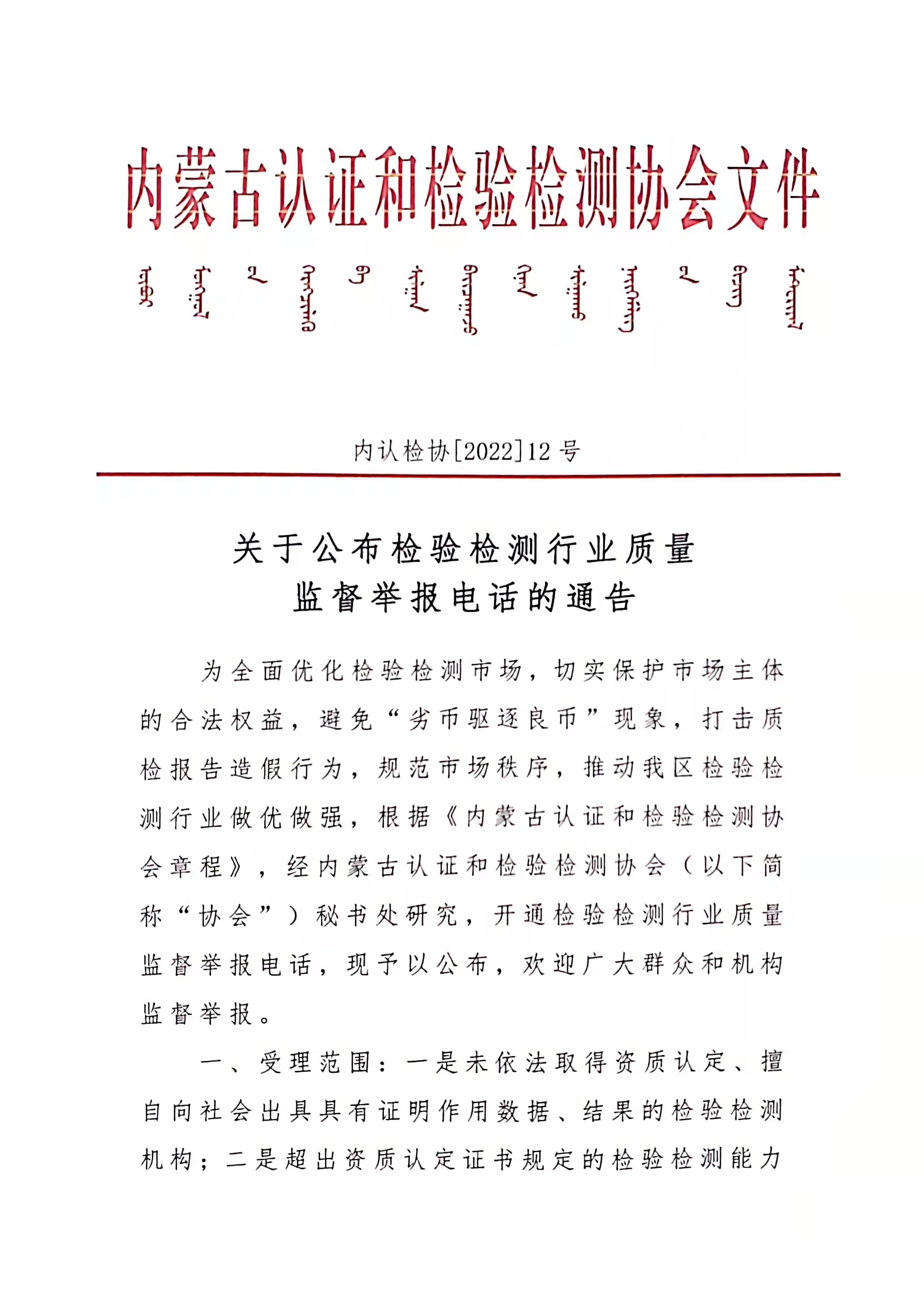 内蒙古认证和检验检测协会