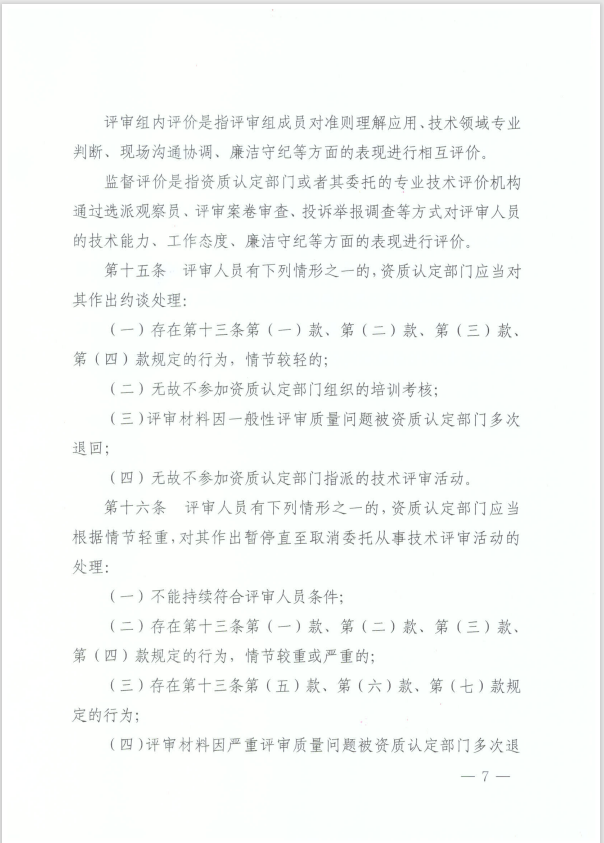 资质认定评审人员管理工作的通知