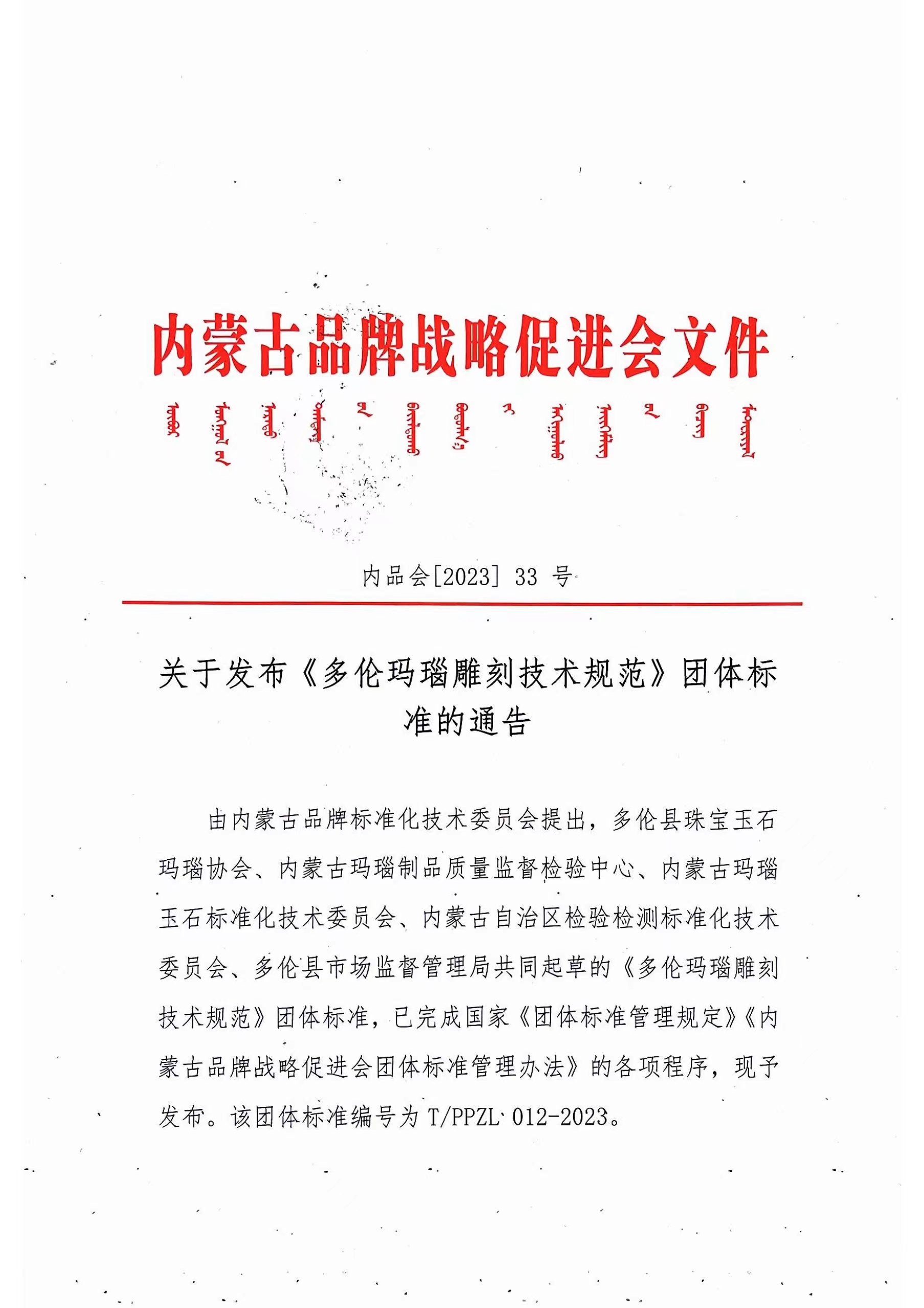 《多伦玛瑙雕刻技术规范》团体标准发布公告